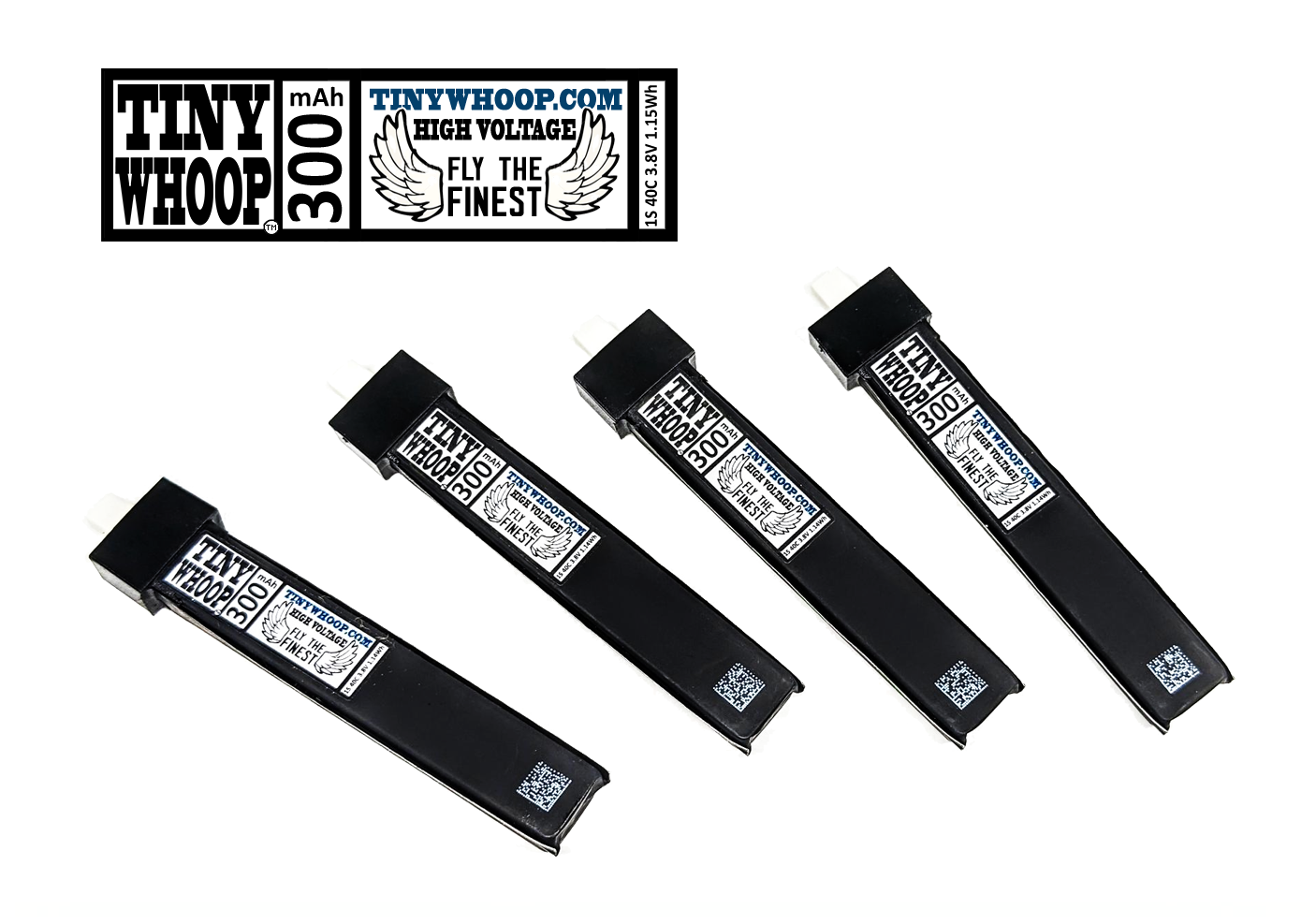 These are the top of the line batteries for Tiny Whoop aircraft. They're the newest generation of folded-cell 1S packs, delivering a higher discharge rate compared to previous Tiny Whoop packs, averaging approximately 30 or 40 extra seconds of flight time! We've also added a pilot name/info area on the back, and if you grab the discounted 8-pack I'll toss in a free fine-tip permanent marker, on me :)